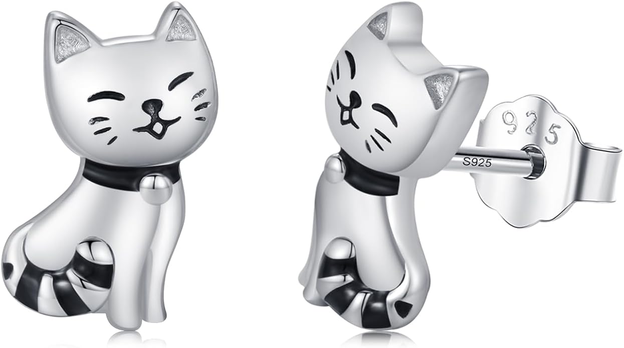 925 Sterling Silver Cat Earrings Cute Animal Kitten Stud Earrings cat Jewelry Gifts for Women Girls Hypoallergenic Earrings for Sensitive Ears