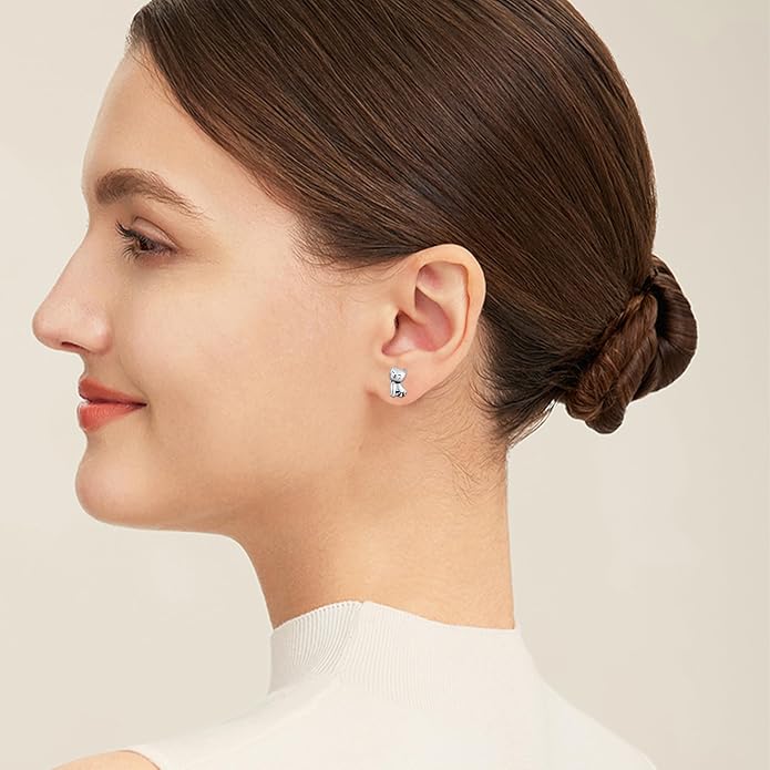 - Kitten Earrings Material: Using 925 sterling silver material and sparkling crystal, hypoallergenic, anti-rust, nickel-free, lead-free, cadmium-free, not contain any allergic elements. Long Time Wearing Keeps You a Good Health.