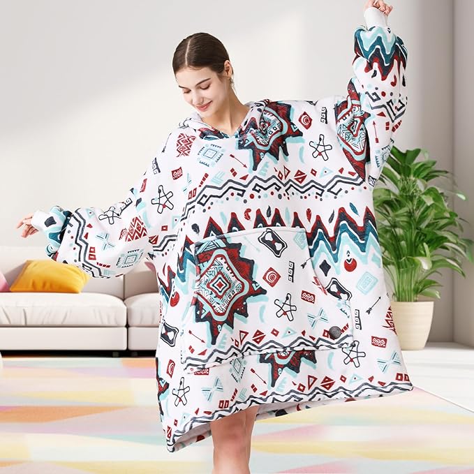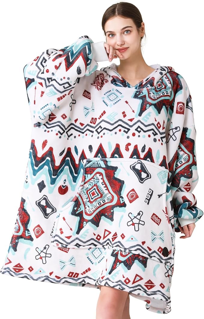 THREE POODLE Wearable Blanket Hoodie for Women, Oversized Sherpa Sweatshirt Blanket for Adults Men, Warm Cozy Bohemia Hooded Blanket, Gifts for Mom Girlfriend Sister
