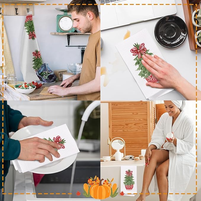 - Multi-Functional: These elegantly designed kitchen towels not only add a charming touch to your decor but also serve various functions, from drying dishes to wiping countertops, enhancing your kitchen's look.