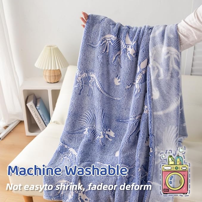 - Glow-in-the-Dark Fun: This dinosaur blanket features an exciting glow-in-the-dark fossil pattern, creating a magical bedtime experience that boys and girls will love.
