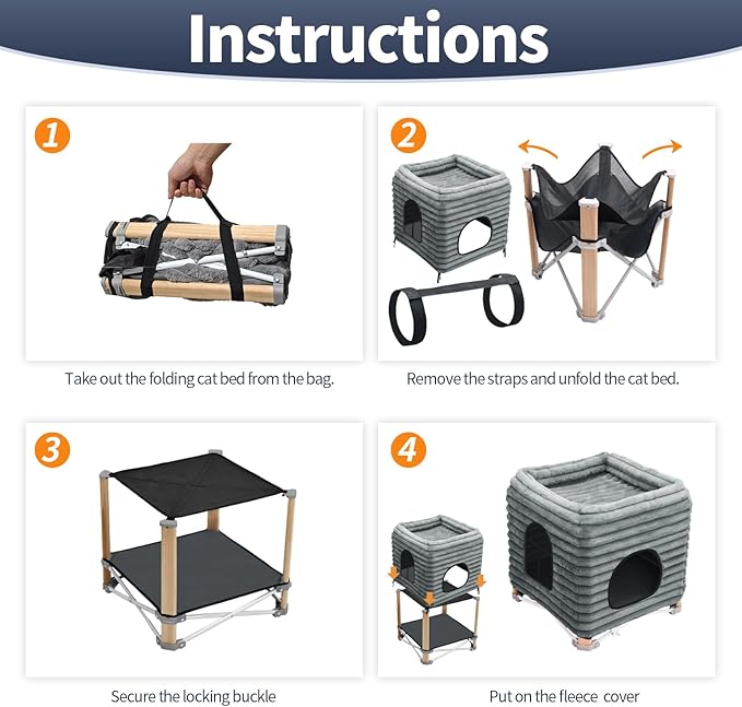 - Transformable Cat Houses for Indoor Cats: The included plush fabric cover easily fits over the wooden frame, instantly converting the cat hammock into a warm, inviting house with a rooftop balcony, perfect for indoor living.