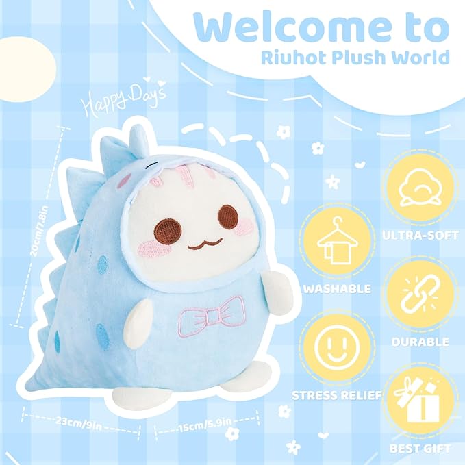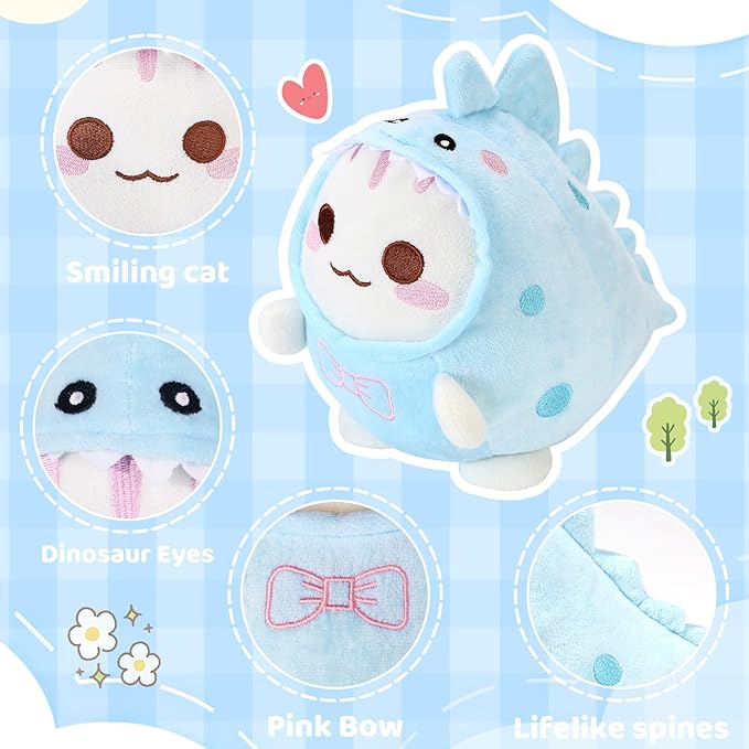 - Suitable Size:Riuhot Cat and dinosaur 2-in-1 stuffed animals stand 8 inches tall, and the dinosaur Outfit and Kitty face make the plush even more adorable