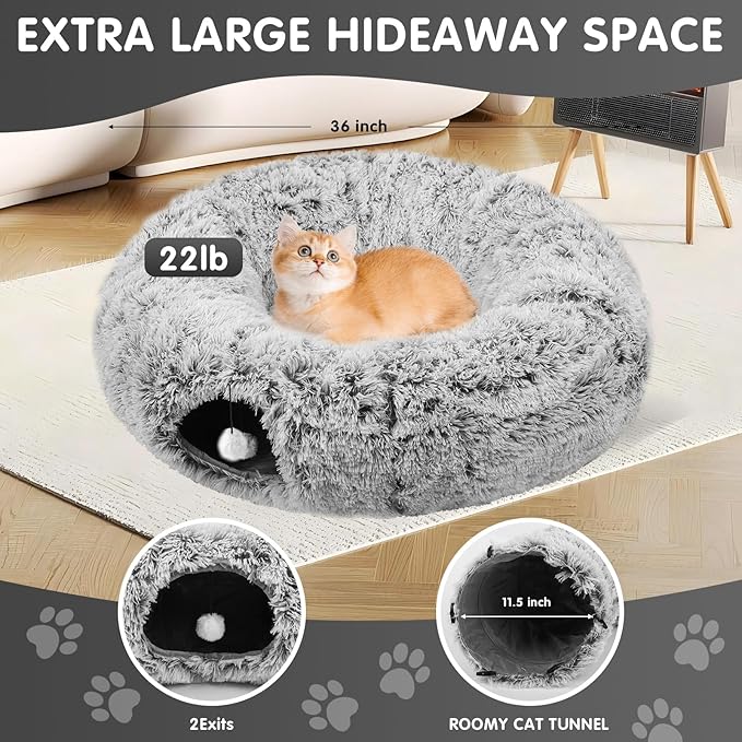 car Bed for Indoor Cats,Multifunctional cat Tunnel Suitable for Small, Medium and Large Cats (Grey)