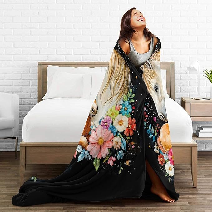 Soft Cozy Horse Plush Throw Blanket - Super Warm Fleece Fuzzy Bedding Blanket for Kids, Girls, Boys & Women - 50"X60"