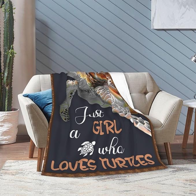 Sea Turtles Blanket for Woman Just A Girl Who Loves Turtle Throw Blanket Turtlesdecor Stuff Merch Cozy Flannel Fleece Fuzzy Warm Soft Plush Lightweight Bedding Turtles Gifts for Girls Couch 50"X40"