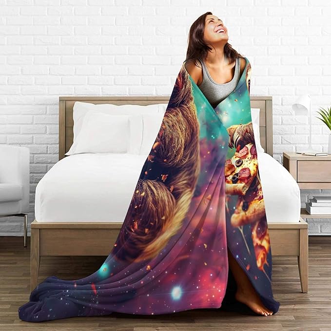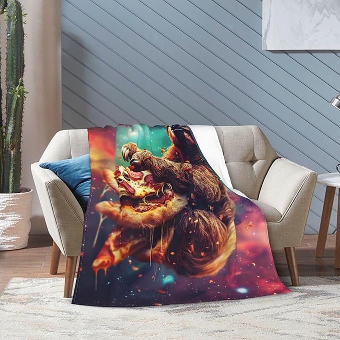 Sloth Pizza Throw Blanket - Funny Sloth Stuff Decor, Cozy Flannel Fleece Soft Plush Fuzzy Warm, Lightweight Bedding for Women & Girls, 50"X40"