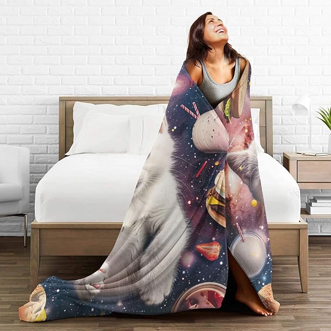 Funny Cats Blanket for Women Hamburgers Pizza Throw Blanket Cats Space Galaxy Stuff Decor Merch Cozy Flannel Lightweight Warm Soft Plush Fuzzy Bedding Cats Gifts for Men Girls Couch Bed 50"X40"