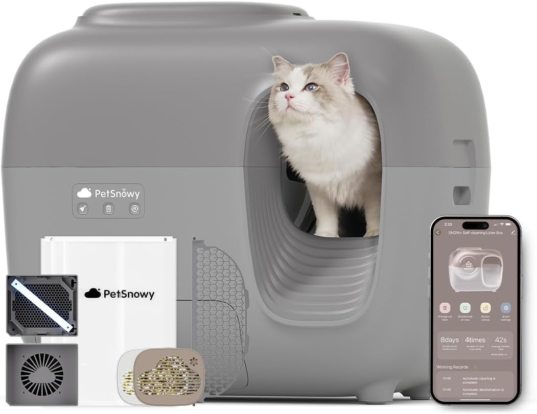 - Effortless Freshness: Say goodbye to poop-smell mornings forever! Made to ensure fresh air for you and your loved ones, SNOW+ automatic cat litter box features an eternal TiO2 photocatalyst system, offering the ultimate solution for your cat's well-being, your peace of mind, and the convenience of no frequent replacements