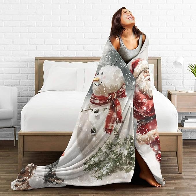 Snowman Blanket for Women Santa Claus Throw Blanket Snowman Decor Merch Cozy Fuzzy Warm Soft Plush Flannel Fleece Lightweight Bedding for Men Boys Kids Girls Couch Bed Sofa 50"X40"