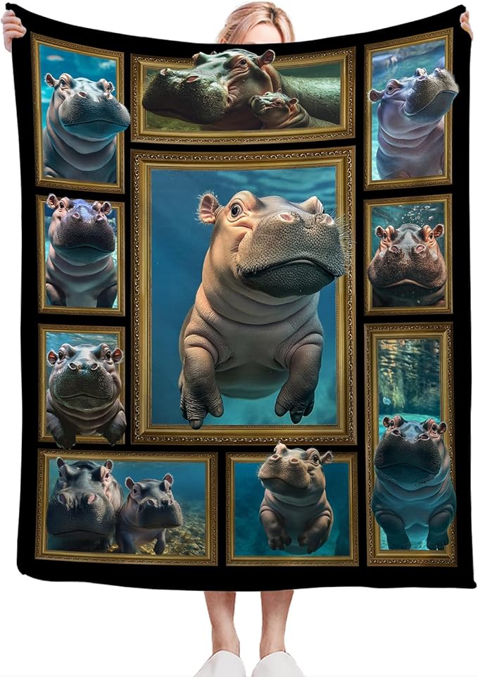 Hippo Throw Blanket Ultra Soft Cozy Cute Fleece Fuzzy Plush Lovers Decor Gifts for Women Girls Adults Couch Sofa 80"x60"