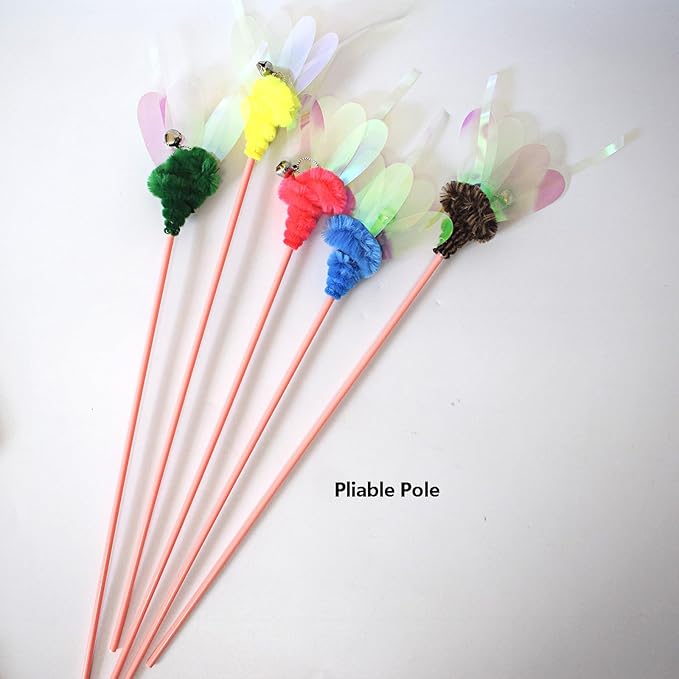 Cat Wand Toy, 4 PCS Insect Cat Toys Interactive Cat Teaser Wands Cat Sticks with Bell for Cat and Kitten