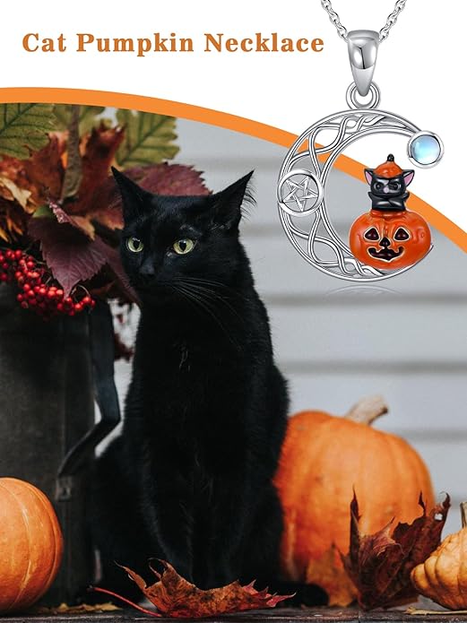 - Material: Black cat pumpkin necklace made of 925 Sterling Silver. Hypoallergenic, accept any quality test to our silver jewelry