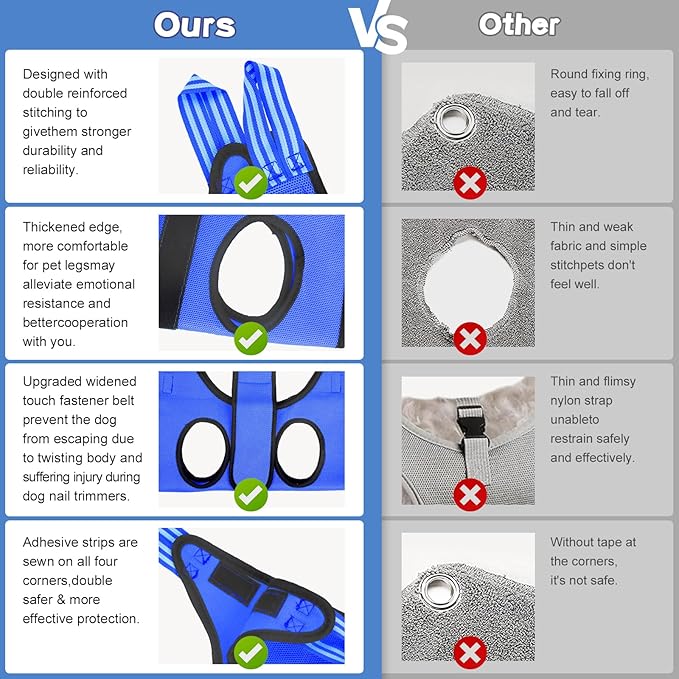 - UPGRADED NEW VERSION 3-LAYER PROTECTION DOG GROOMING HAMMOCK:Compared with others brand,The upgrade SOGUE dog sling for nail trimming sewed a wide size belt with touch fastener,super strong metal carabiners,hook and loop fastener sticker,which is made of mesh textile material and the sling is designed with a special craft sewing techniqu,total THREE-layer protection anti-escape string prevent tearing,escaping and falling off,The harness large size dog is securer,and your pets feel safer in it