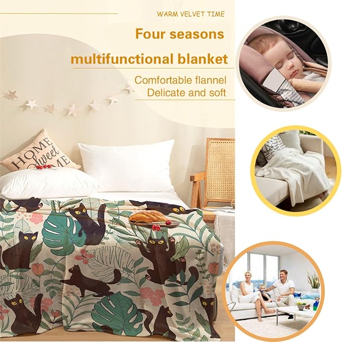 Floral Thow Blanket Super Soft, Cozy Black Cat, Best For Kid, Adult, Women, Men, Hallowen, Cute Pet Cats, Dorm Home Decor (50"X40")
