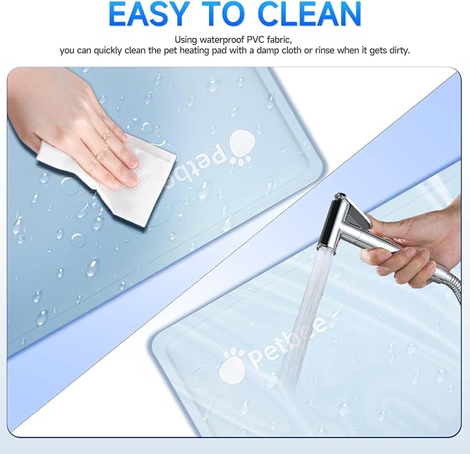 - EASY-TO-CLEAN DESIGN – Cleaning is a breeze! Simply wipe down with a damp cloth or rinse the surface (make sure the blanket is unplugged and avoid wetting the cable connections). This indoor pet heating pad is designed to keep things simple for you and cozy for your pet.