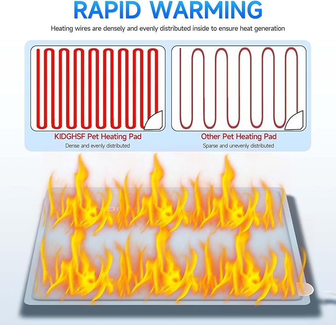 - FAST & EVEN HEATING – With densely distributed heating wires, this cat heating pad quickly and evenly distributes warmth. No more cold spots – just consistent, soothing heat to keep your pet feeling cozy.