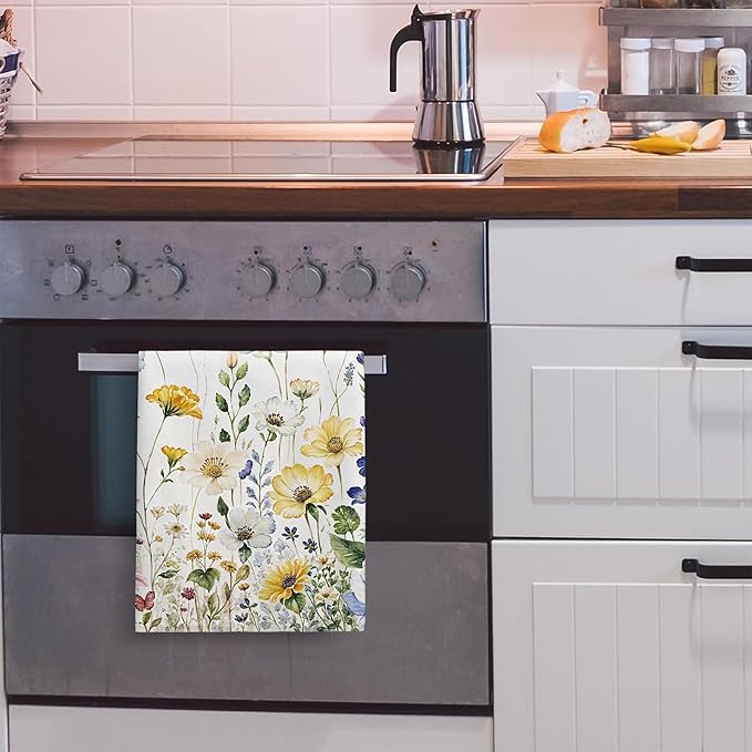 kampdream Faxdong Floral Hand Towel Set of 2, Watercolor Wildflower Botanical Plant Leaves Design Soft Absorbent Towels for Home Hotel Gym Spa Bathroom, Multi5 16×27 inch