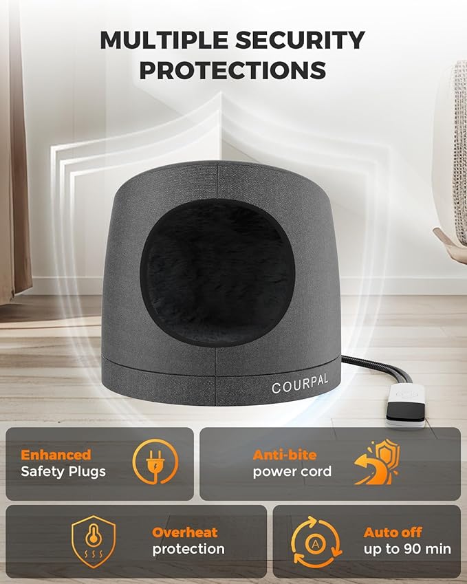 - Pet Friendly | 3-FOLD PROTECTION - If the temperature gets too high, the over-temperature [149℉] protection kicks. The varistor maintains an instant safety response, and the chew-proof power cord means even the liveliest cats can't make a mess. Enjoy the warmth without having to worry about safety.