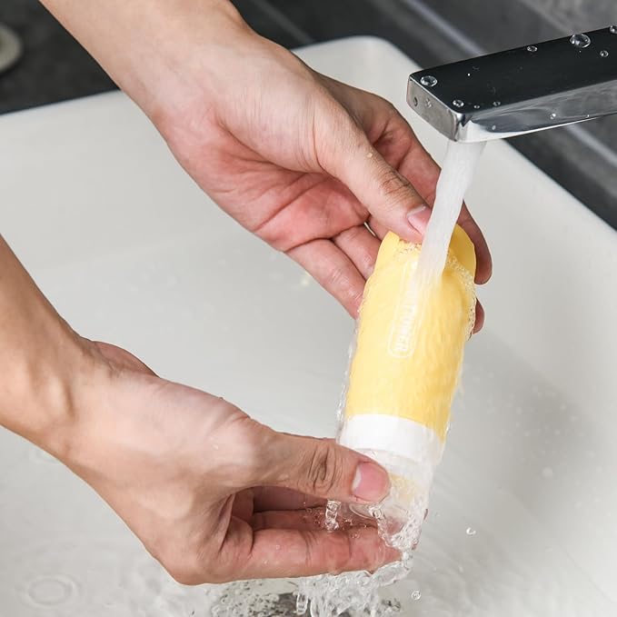- Easy to Use: The wide opening design will make your travel set easy to pour in liquids and help you get the last drop without wasting. Wide mouth also is great for you to clean the tube, when it’s time to clean them up the plastic ring can be detached easily, included brush for better cleaning.