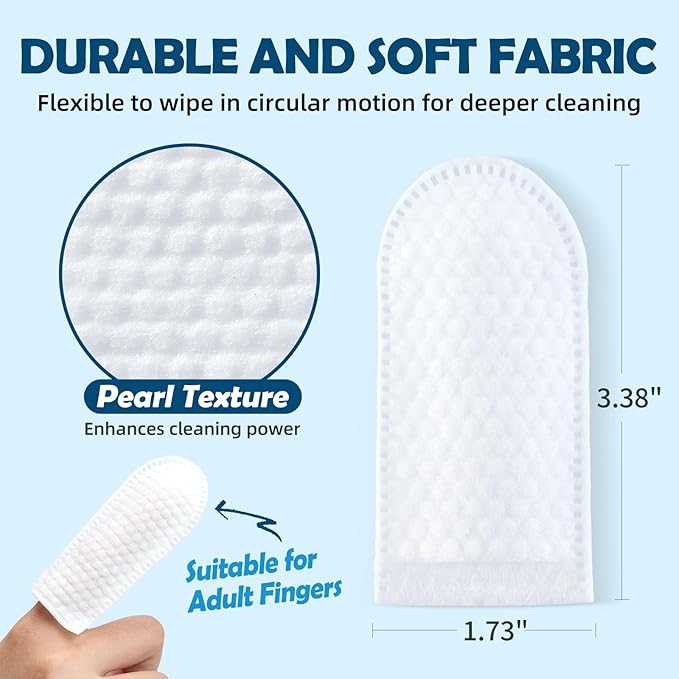 - WIDEN EAR FINGER WIPES: Extended dog grooming supplies wipes size to 3.38'' x 1.73'', ensuring easier to wear on fingers. Our dog tooth wipes feature bumpy side with brushing beads,which effectively clears plaque from teeth surfaces. Easy to clean pet's tooth and save time.