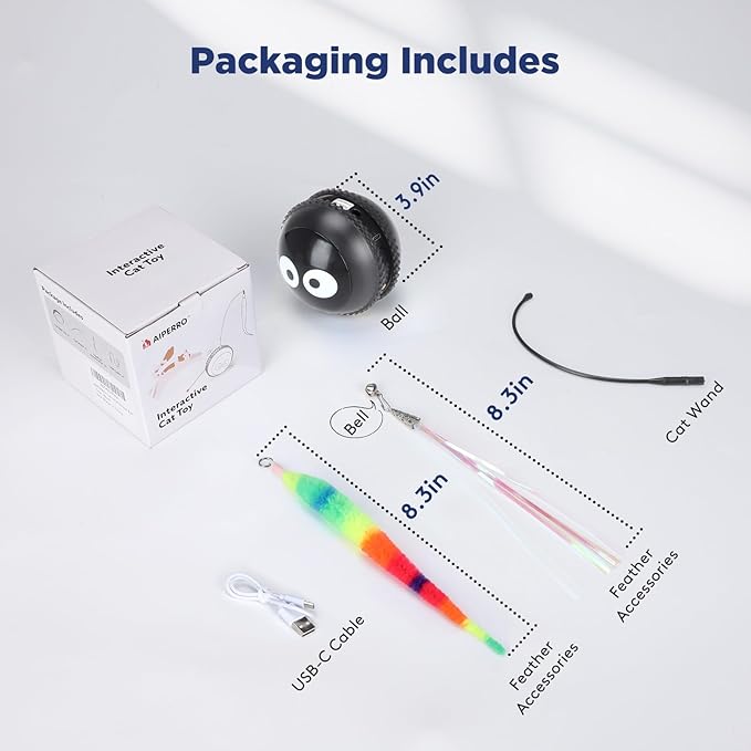 - [Promoting Exercise and Entertainment]: AIPERRO interactive cat toy is suitable for indoor cats of all ages and sizes. Not only does it keep cats entertained and mentally focused, but it also promotes exercise and helps prevent obesity and boredom-related behaviors. Additionally, this innovative cat toy makes an perfect present for cat lovers, bringing endless fun to their beloved cats.