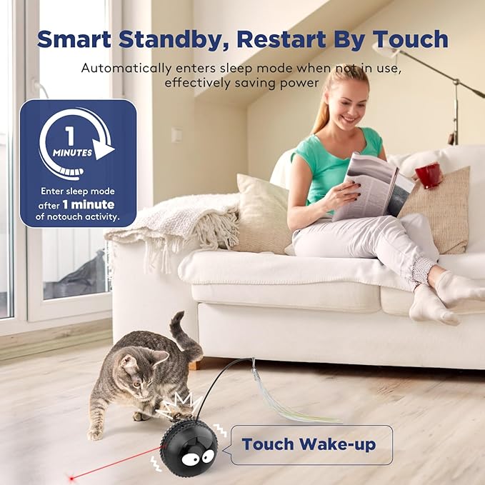 - [Smart Sleep Mode & USB Rechargeable]: Designed with a smart sleep mode, this automatic cat laser toy ball enters sleep mode after 1 minute of inactivity and reactivates when touched again, helping to conserve energy. It can also be conveniently charged via USB cable. (Note: The sphere is easier to wake up when touched during sleep mode)
