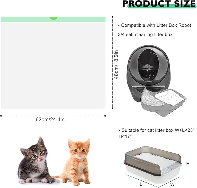 - Premium Quality: The cat litter liners are made of high quality hdpe material that features a strong seal and is odorless; The tear-resistant litter box 4 replacement waste bags are scratch-resistant and waterproof, keeping your litter box clean, providing convenience when disposing of cat waste