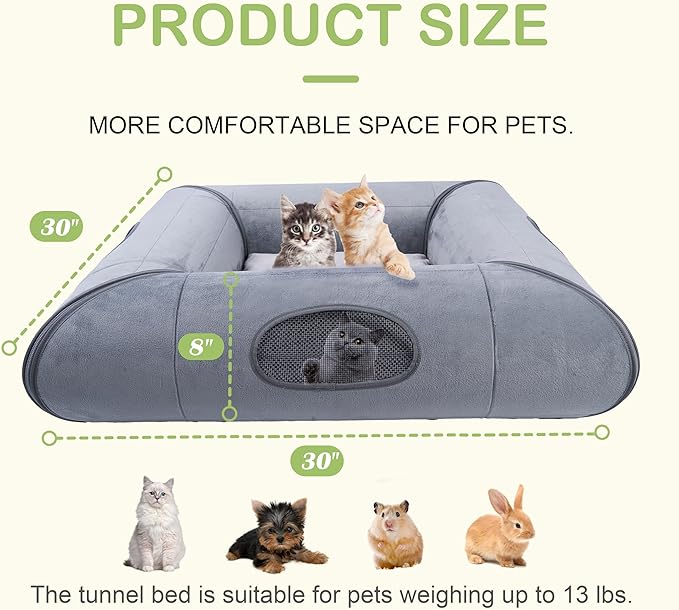 - 【INTERACTIVE ENTERTAINMENT】This cat cave is an ideal gift for cat owners, attracting cats' love, satisfying their scratching instincts and avoiding damage to furniture. The breathable peek-a-boo window design in the tunnel allows cats to interact with their owners and enhance their relationship while playing, bringing endless fun. It will be the best choice for friends who own cats, puppies, rabbits, hamsters and other small animals.