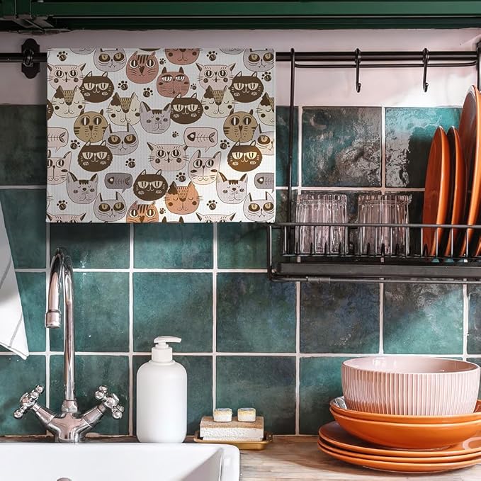 Cat Towels,Cat Hand Towel,Cat Kitchen Towels,Cat Dish Towels,Cat Kitchen Accessories,Cute Dish Towels For Kitchen,Cat Gifts for Women,Funny Kitchen Towels,Cat Mom Gifts-Gifts For Cat Lovers For Women