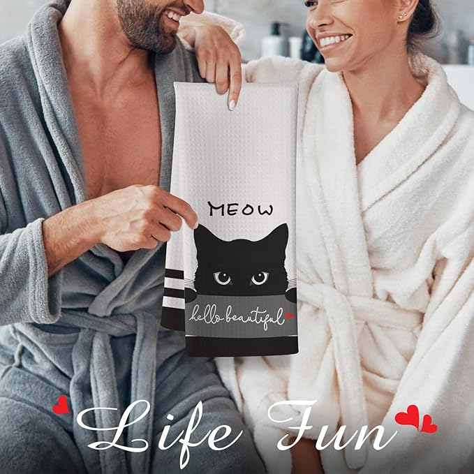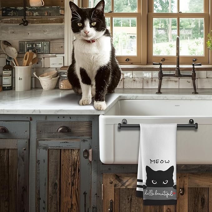 Cat Kitchen Towels,Cute Towels,Cat Kitchen Accessories,Cat Dish Towels,Cat Hand Towels,Crazy Cat Lady Gifts,Cat Lady Gifts,Black Cat Gifts for Women-Perfect for Decorating Your Kitchen and Bathroom