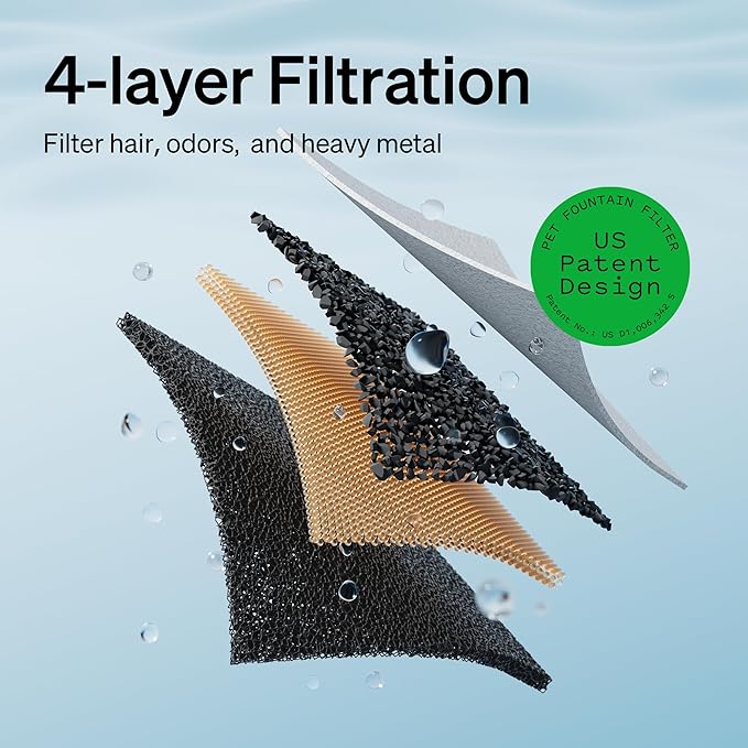 - All For Your Pet’s Health - Every drop of water is filtered through multi-layer filtration to remove all impurities and provide oxygen-enriched and better-tasting water.