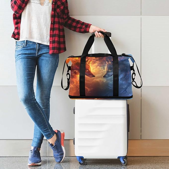 A Wolf Composed Of Starry Sky Travel Duffel Bag Waterproof Gym Sport Tote Bag Carry On Weekender Bag with Compartment