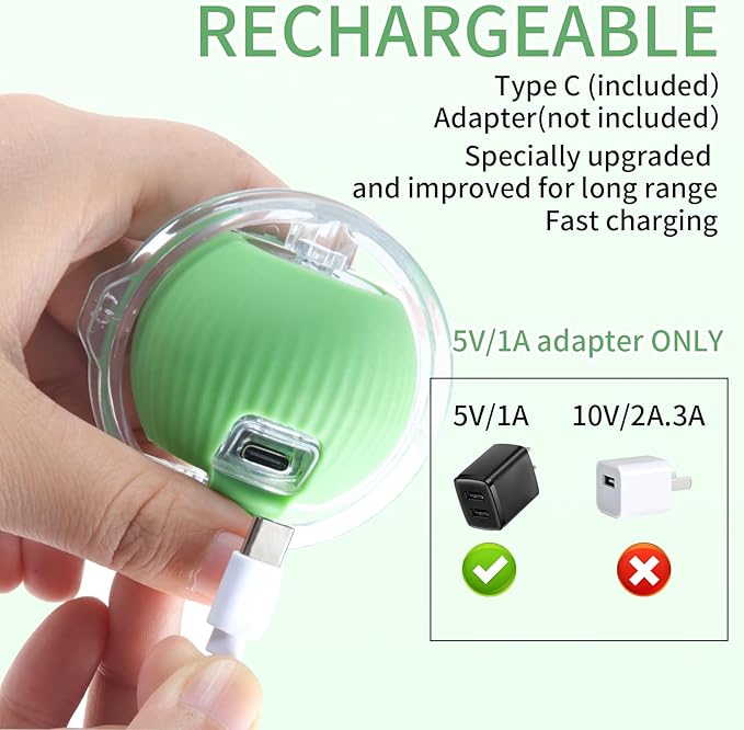 - USB CHARGING CONVENIENT: This cat toy can be charged via USB, specially upgraded and improved for long battery life! Fast charging and no need to change batteries is both eco-friendly and convenient, ensuring your pet has uninterrupted playtime. Comes with a C-cable that can easily be fully charged in less than half an hour!