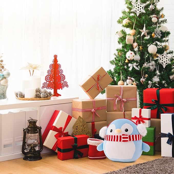 - Adorable and Original Design: Penguin plush is specially prepared for Christmas and winter. The penguin wears a red and white scarf and furry earmuffs, which makes people feel warm and highlights the festive atmosphere.