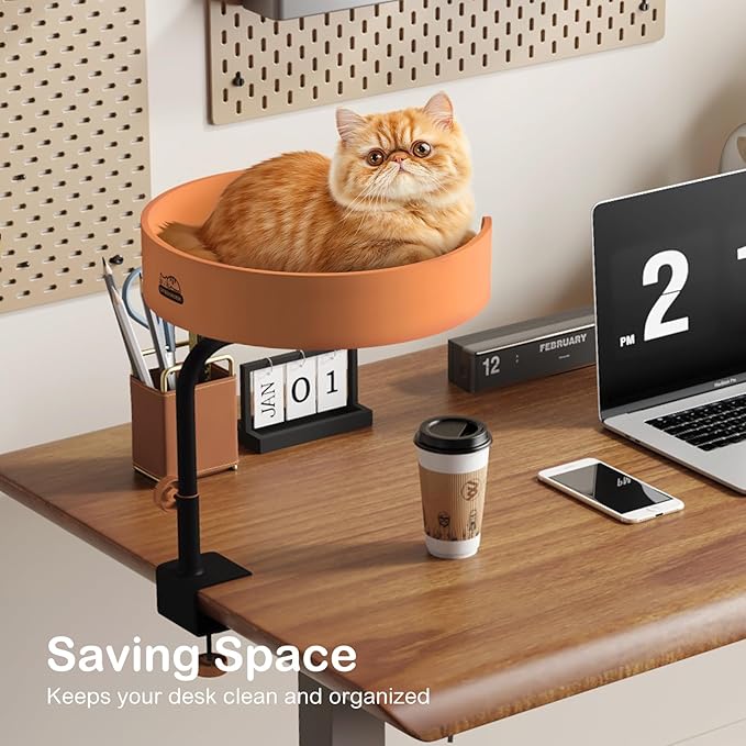 - Sturdy & Safety: Crafted with a durable metal support rod and a cat nest, this design can support up to 30 lbs, ensuring stability and security for your cat. The base clamp features a secure locking mechanism that provides a firm grip on your desk
