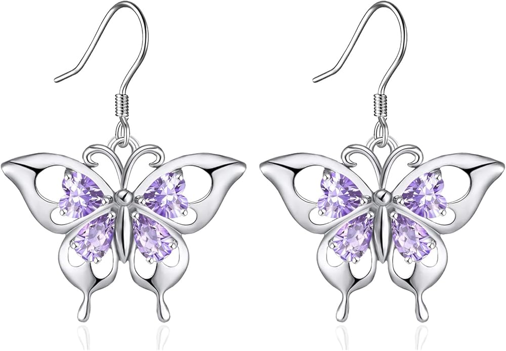 - Elegant Butterfly Dangle Earrings: Featuring a comfortable 925 sterling silver fish hook design, these earrings dangle beautifully, making them a perfect statement piece for any occasion