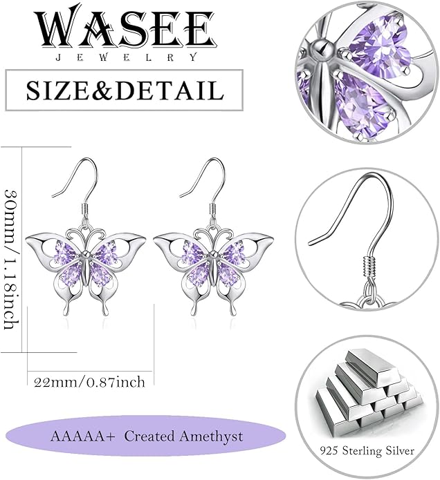 - Butterfly Earrings: Butterfly represents beauty and freedom, which is adored by most women! Combining Shiny light purple stone, the butterfly earrings are so gorgeous that you will receive many compliments for your high fashion taste