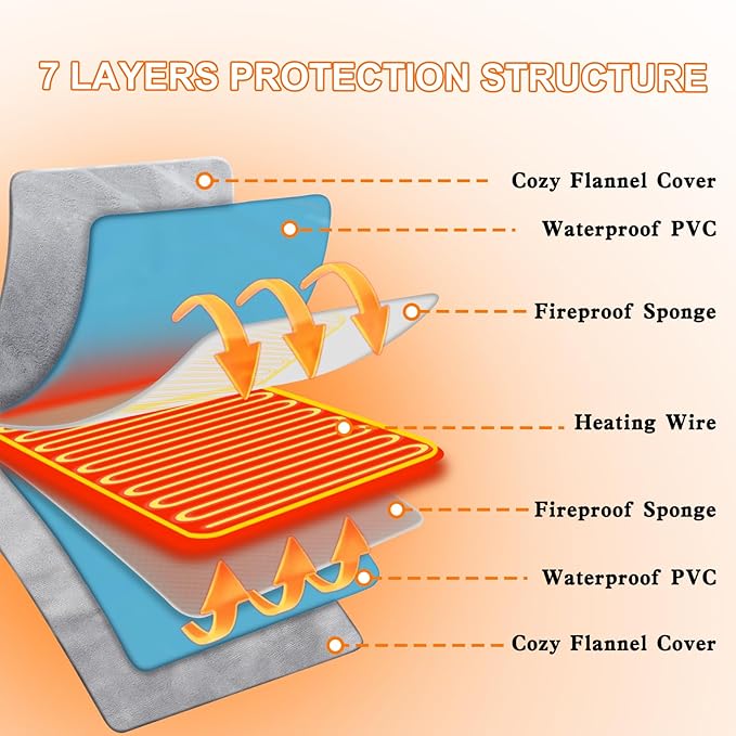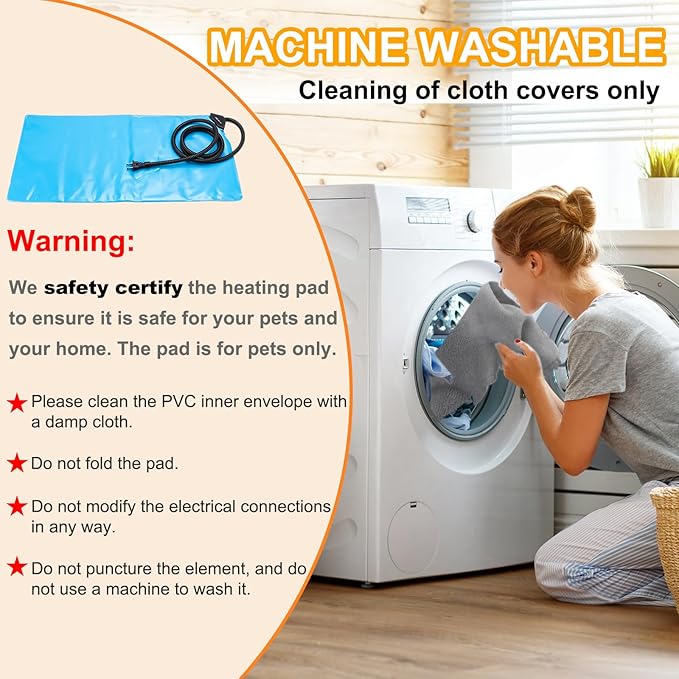 - Safety always comes first - our heated cat pad has a 5-foot steel-wrapped power cord that's UL certified. The waterproof & flame-retardant soft PVC cover and built-in temperature sensor prevents overheating guarantee your fur baby's safety