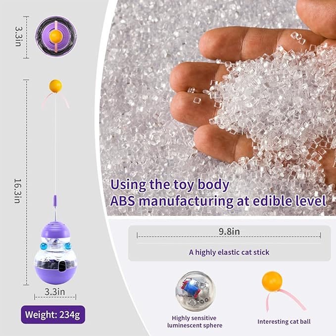 Cat Interactive Toy Indoor, Cat Treat Dispensing Toy, Slow Feeder Puzzle Toy for Cats, Food Dispensing Ball for Pets, Fun Interactive Enrichment Wand Toy for Cats