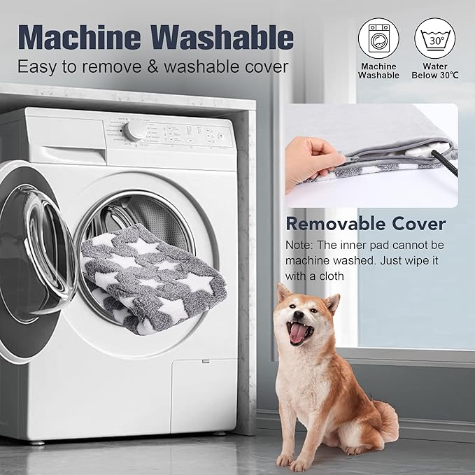 - Soft Removable Cloth Cover: Our cat heating pad comes with a soft and cozy removable cloth cover. Not only does it provide an extra layer of warmth, but it is also easy to clean, allowing for hassle-free if inner pad gets dirty, you can wipe it clean with a wrung-out wet towel instead of soaking it in water