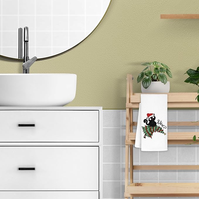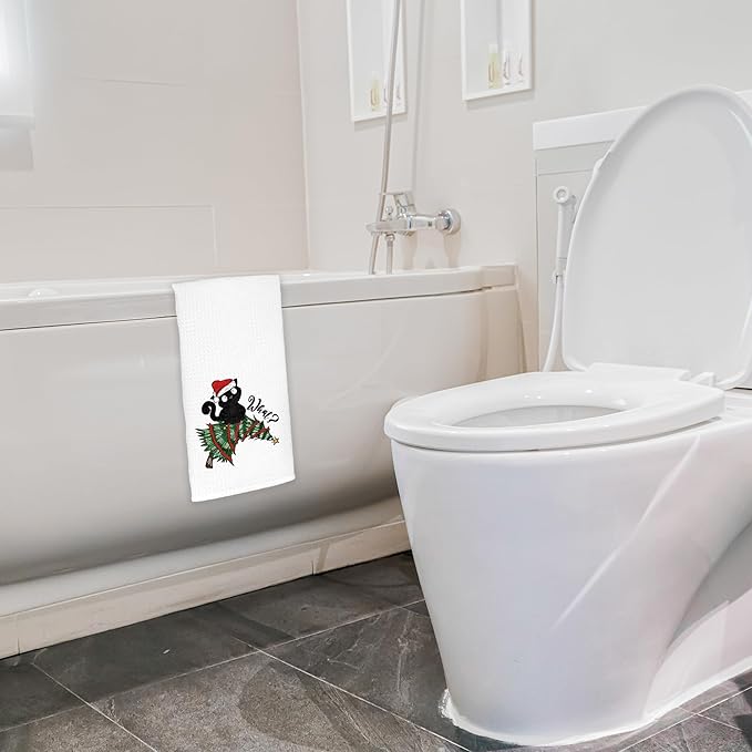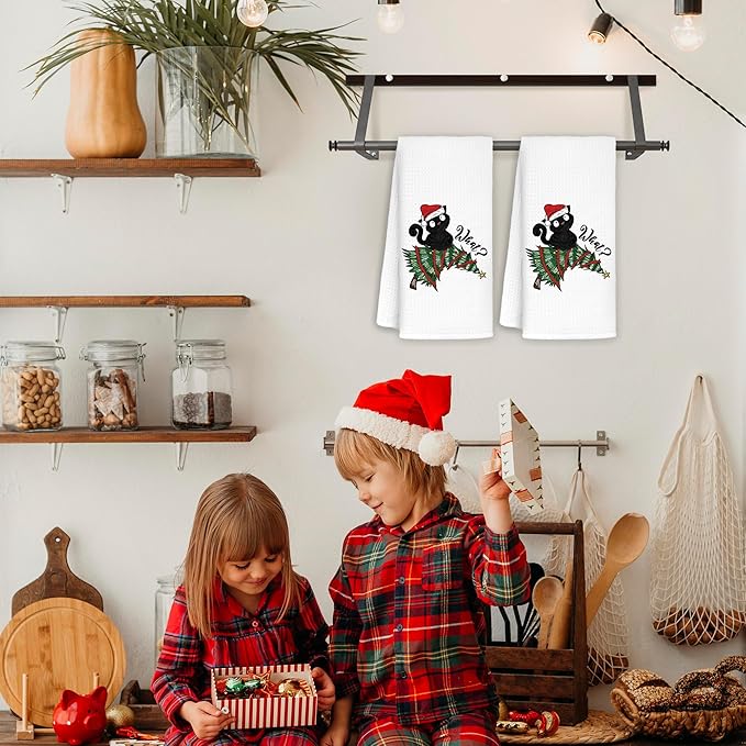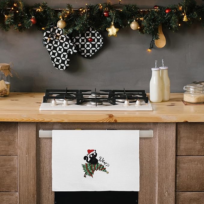 Black Cat Christmas Towels, Cat Lovers Gift, 16x24 in