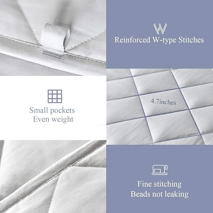- 100% Cotton, Softness Enough: Cotton material provides superior breathability and temperature control! The weighted filler are glass beads, which is safe and no smell. And 7-layer structure and strong stitching prevent the glass beads from missing or moving freely when the weighted blanket is used.
