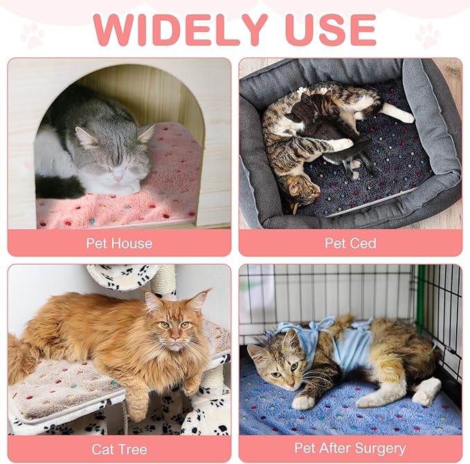 - Package Includes: the package includes 4 pack self warming cat crate mat with cute dot pattern design, each size is measured about 16 x 20 inch/ 40 x 50 cm, ideal for cats, kittens, puppies, dogs, newborn pets, pregnant pets, pets healing from an injury, aging and arthritic pets, even small animals like guinea pig, hamster, rabbit, hedgehog, ferret, chinchilla, marmot