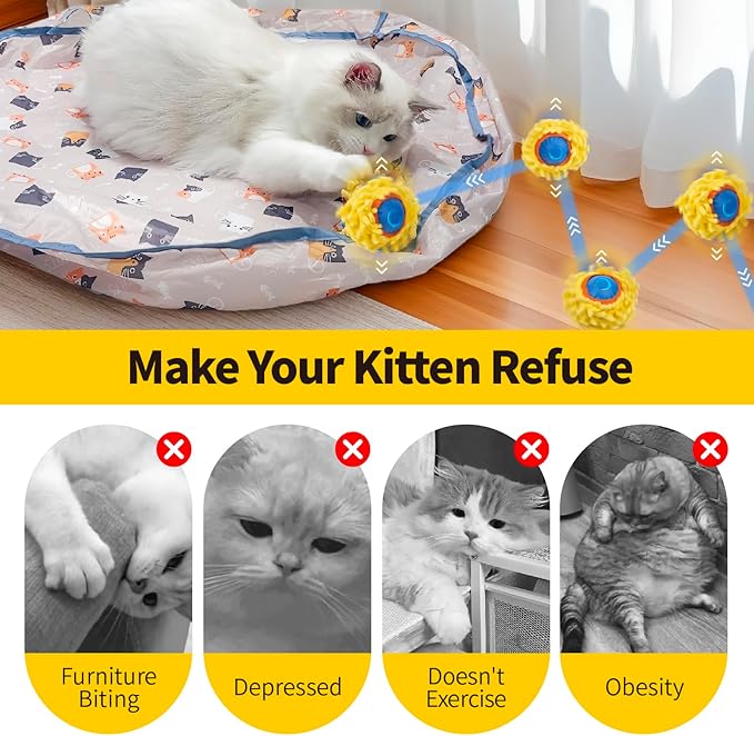 - 【INTERACTIVE ENTERTAINMENT】Our interactive cat toys are designed to give your cat endless fun, with fast-bouncing balls moving in hidden pockets, stimulating your cat's hunting instincts and keeping them active while playing.
