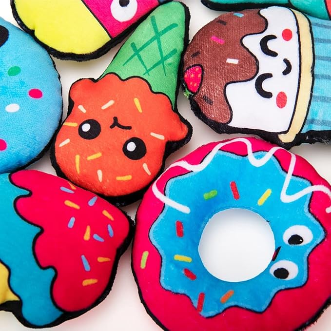 - Adorable Food Design - This plush catnip toy set includes 8 different types of Dessert: Ice cream, cake, donuts. Vivid food-shape can effectively catch cats' eyes, and the delicious Dessert toys get your cats out of boredom and loneliness when you are busy.