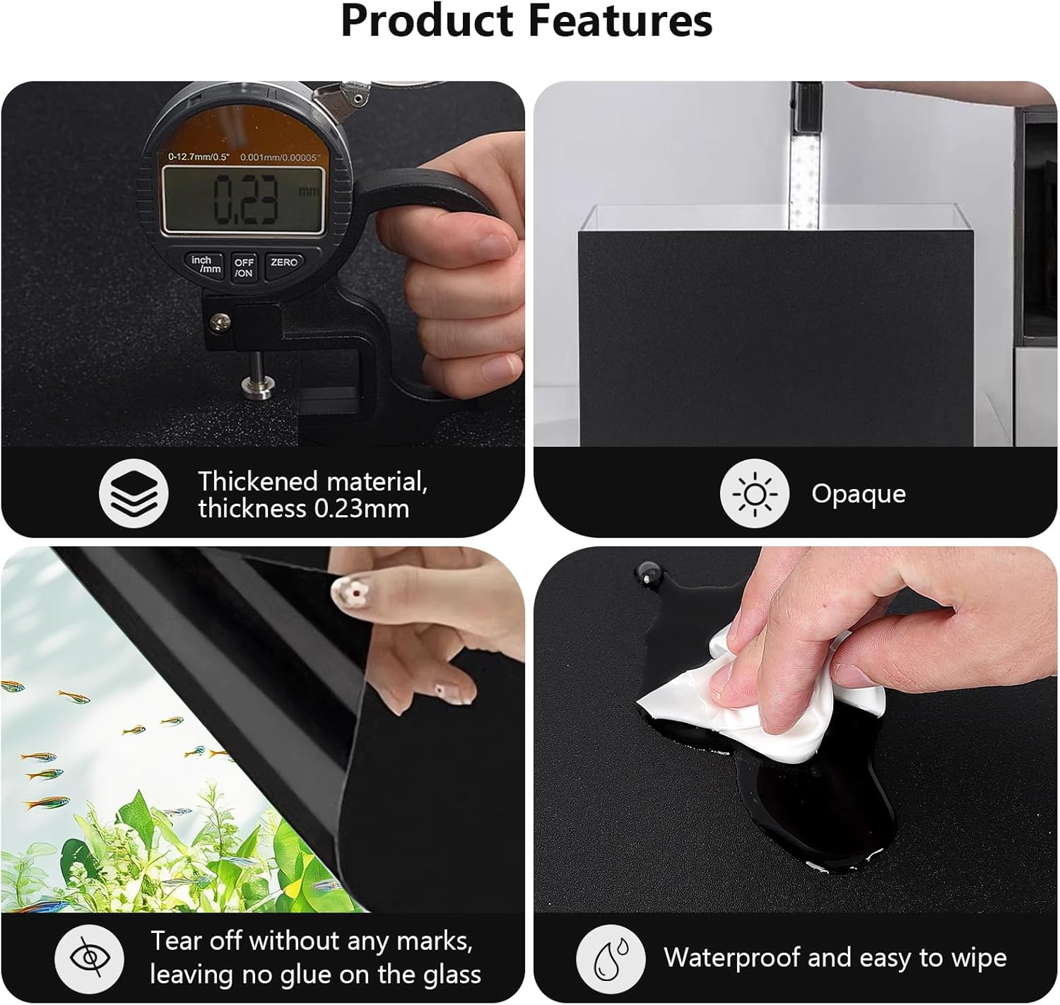 Aquarium Background Paper Decor Fish Tank Backdrop Wallpaper Electrostatic Adhesive, No Glue, Easy to Install, Reusable (11.8“H×39.4”L, Black)