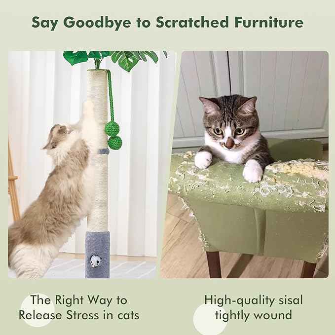 - Adorable Decoration: Cat scratching post is designed like a tropical tree, it makes playtime as real as wildlife and a scratching paradise. The top of the post is 3D simulated leaf and the texture is clearly visible. In addition, the unique design is better match your home. At the same time, greenery also makes people feel full of vitality.