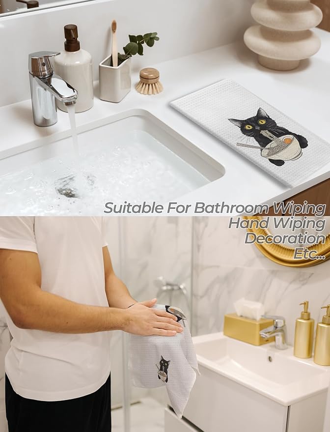 Black Cat Kitchen Towels, Cat Decor Hand Towels for Bathroom, Black Cat Gifts, Cat Gifts for Cat Lovers, Cat Dish Towels Tea Towels for Kitchen, Cat Kitchen Bathroom Decor, 16x24 Inch