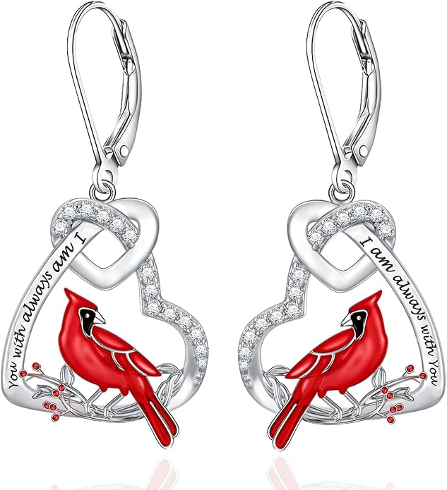 - Heart Knot Design: The red bird cardinal perched on a tree branch with heart, it’s a visitor from heaven. Wearing the cardinal earrings when you miss your loved one.